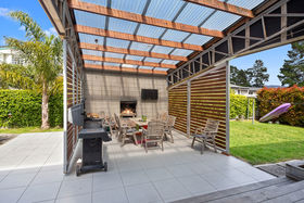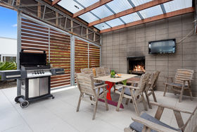 Sleeping up to 10 guests in 5 bedrooms and 3 bathrooms, Coastal Chateau has more than enough space for the family or group to spread out and settle into their own space. At the end of a big day out, bring everyone together under the sheltered outdoor area to sit around the outdoor fireplace with a glass of wine.