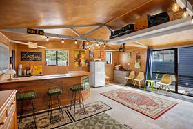 Raining? No problem, the oversized double garage is currently set up with an entertainer's bar and would be a great rainy day games room!