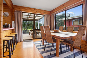 Three-double bedrooms, one-bathroom - and an additional deluxe outdoor shower, entertaining areas both front and rear, large double garage, flat easy-care site, semi-furnished, off-street parking - and an outlook! It's perfect - lets do it.