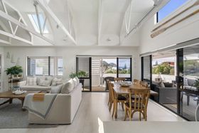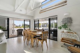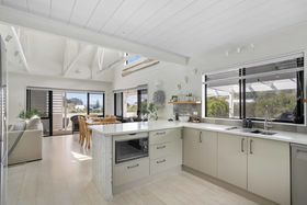 This home is all about enjoying the view down to the beach and the surrounding bush environment, tucked away in a private setting. The living areas and vast covered verandahs connect to the gorgeous kitchen, perfect for entertaining all year round.