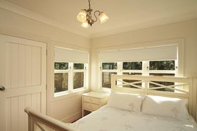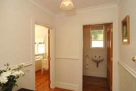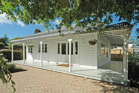 Renovated 1920s period kauri cottage.Originally a farm cottage,this house has been renovated to the highest standard using quality appointments throughout, yet retaining the old world charm of an earlier era , but keeping up with todays modern life. Original polished kauri floors (insulated), plus insulated ceilings, a spacious new tiled bathroom and a modern kitchen. The two bedrooms or a third (currently being used as dining room) have views of the beautiful landscaped garden. Beautifully restored and thoroughly renovated with Kauri panelled doors, Kauri fire surrounding a modern gas fire.