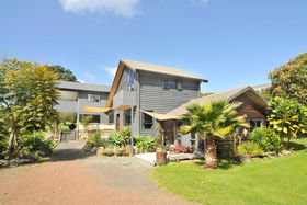 A grand setting wraps around this large home of generous proportions.Set on 1 acre (4000m2) of park like grounds, this home has quality and comfort. Four large bedrooms, two of these have en suites, and also walk in wardrobes. There is an additional main bathroom with bath & shower and sep. toilet on the ground level.Two of the showers in the home are enclosed.