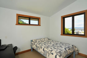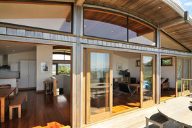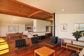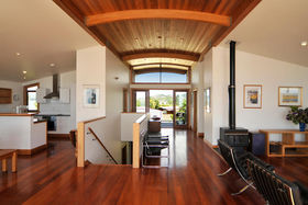 With amazing ocean views to the North and East, the rimu stairway and gallery area connect the eastern living spaces with those to the west encompassing the spectacular sunsets over the Tairua Estuary and beyond to the craggy volcanic Coromandel Ranges.