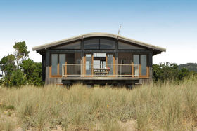 The roof has been designed to echo the form of the dunes and sit quietly on the landscape. This house defines the term "absolute beachfront"